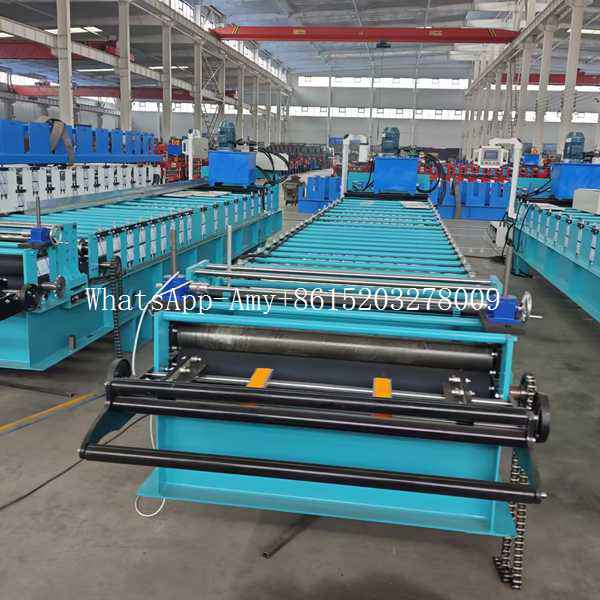 Equipped with an automated control system, the machine allows operators to easily set production parameters such as sheet length, batch size, and line speed. The integrated cutting system synchronizes with the forming line, providing clean and precise cuts without stopping production, which maximizes efficiency and output.